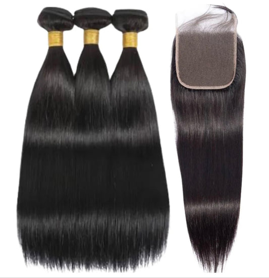 3 Bundle Deal with 4x4 Transparent Lace Closure