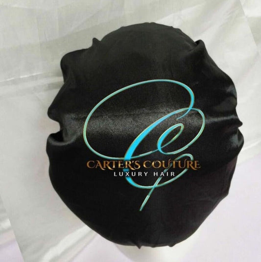 Carter’s Couture Luxury Silk Bonnet for hair, Black Bonnet.